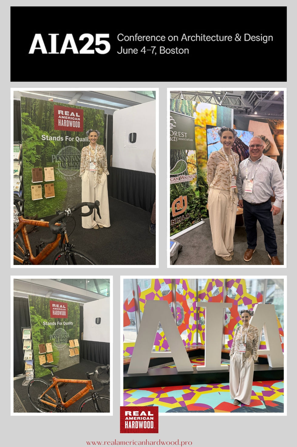 A series of images capturing architectural design exhibitions, including displays, attendees, and architecture conference collages.